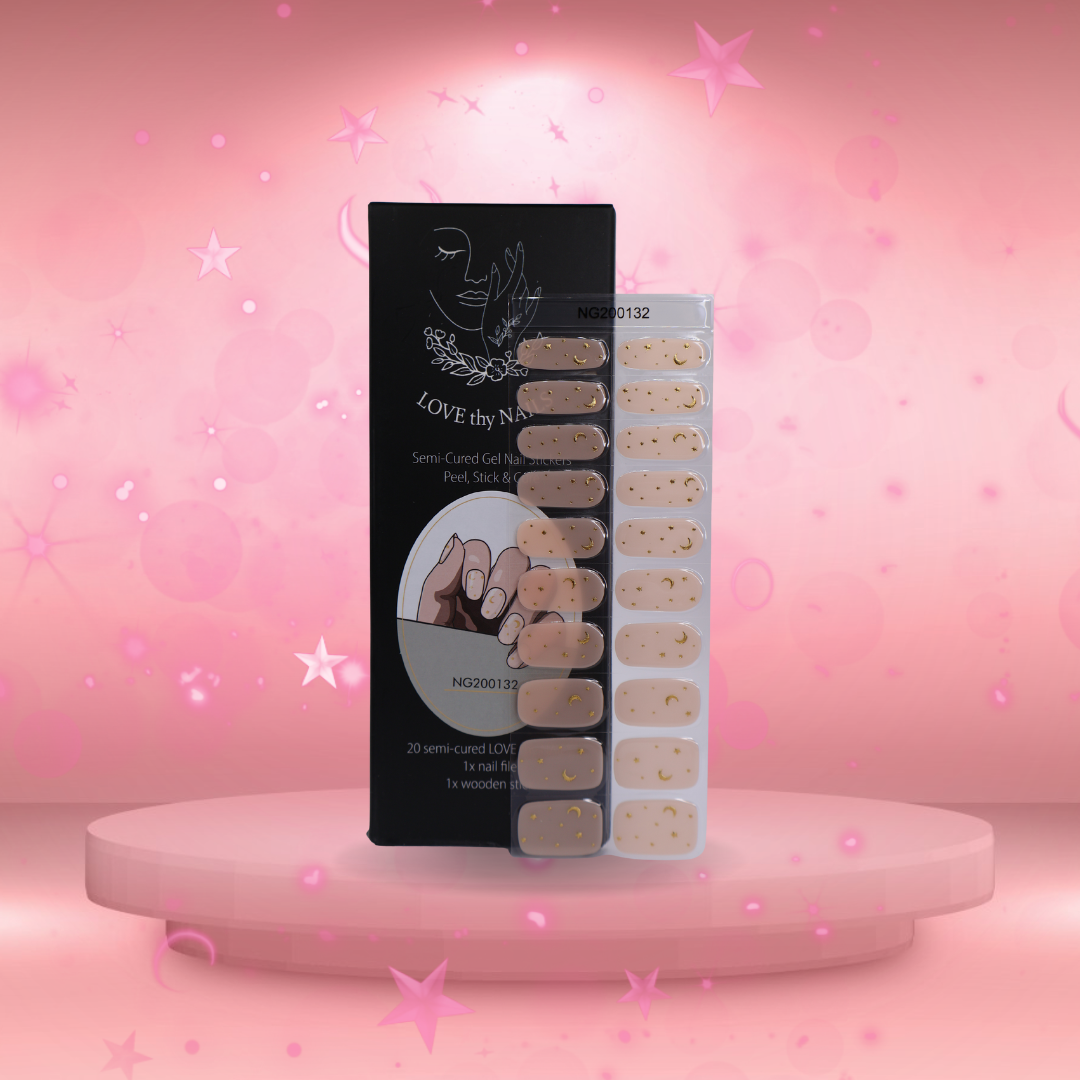 A soft nude base with delicate celestial accents — this dreamy set brings starry-night magic to your everyday nails.